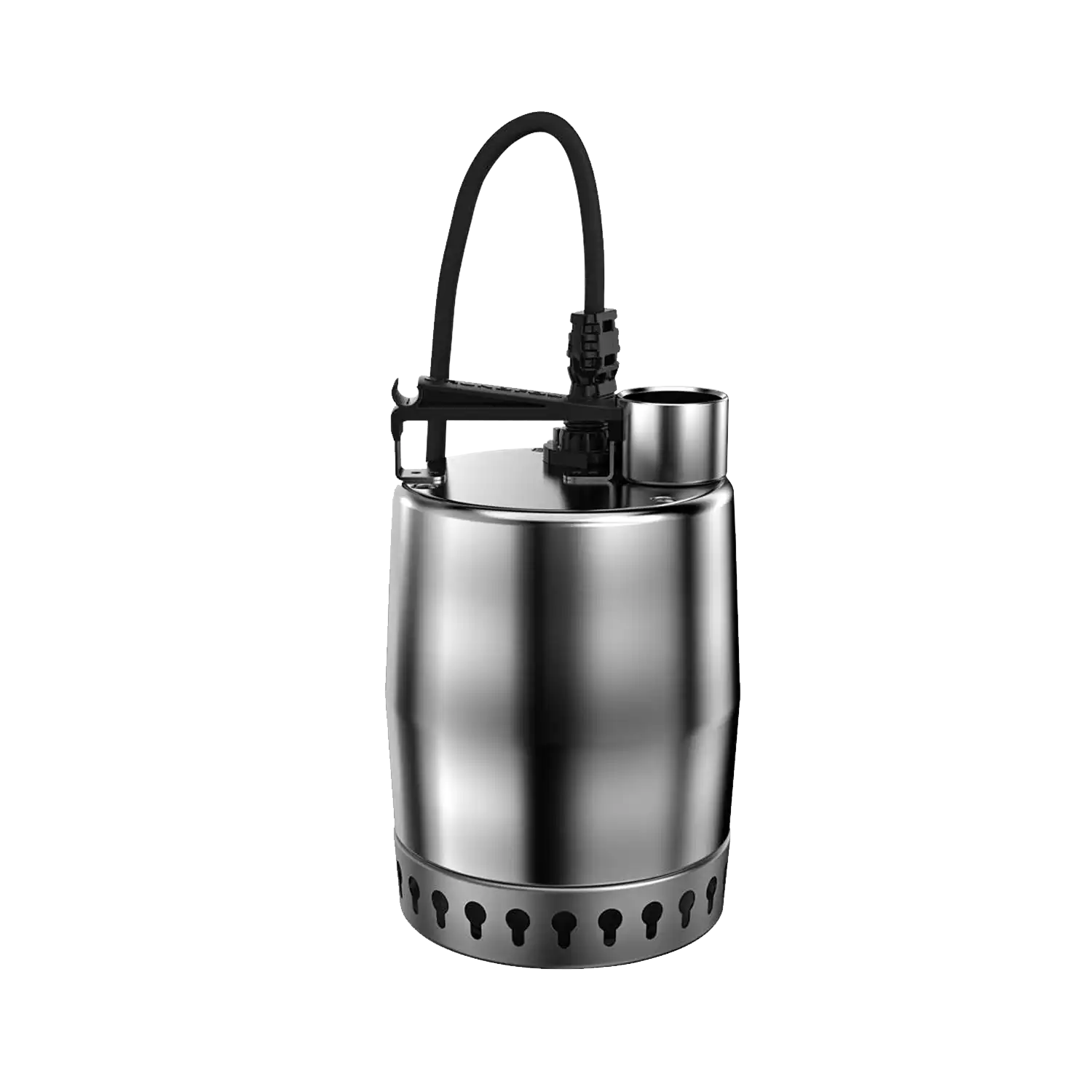 -Unilift KP เครื่องสูบน้ำเสียสเตนเลสสตีลแบบจุ่มใต้น้ำใบพัดเดี่ยว (Single-stage, submersible, stainless steel drainage pump) ในรูปลักษณ์ที่แข็งแกร่ง มีช่องระบายตั้งอยู่ด้านบนของตัวเครื่อง ตัวเรือนด้านนอกทำเป็นชิ้นเดียวกัน สายไฟหลักและสายไฟของสวิตช์บอกระดับ (level switch) ต่อเชื่อมกับปลั๊กกันน้ำตัวเดียว